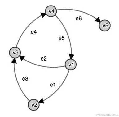 对于任何图,无论是有向的还是不是,我们都可以得出一些基本的性质,这些性质在本章后面会讨论。我们称顶点的数量|V|为图的顺序,边的数量|E|为它的度,有时也称为价度。顶点的度是具有该顶点作为源或目标的边的数量。对于有向图和给定的顶点v,我们还可以区分入度,即指向v的所有边的总和,和出度,即从v开始的所有边的总和。举个例子,图 1 中的无向图的顺序为 5,度为 6,与图 2 中显示的有向图相同。在后者中,顶点 v1 的出度为 2,入度为 1,而 v5 的出度为 0,入度为 1。