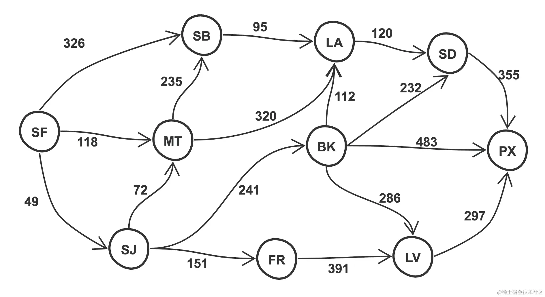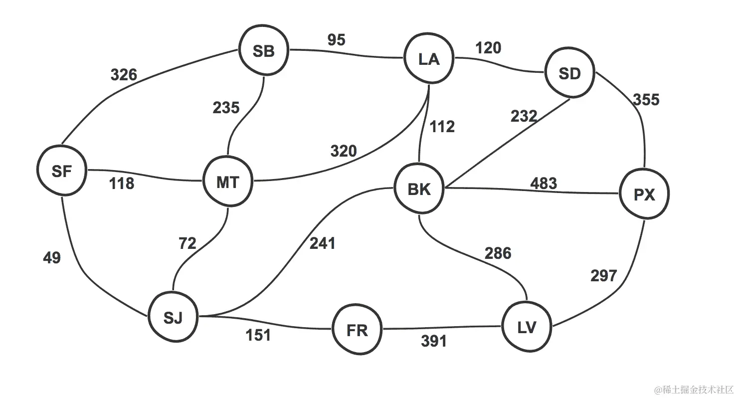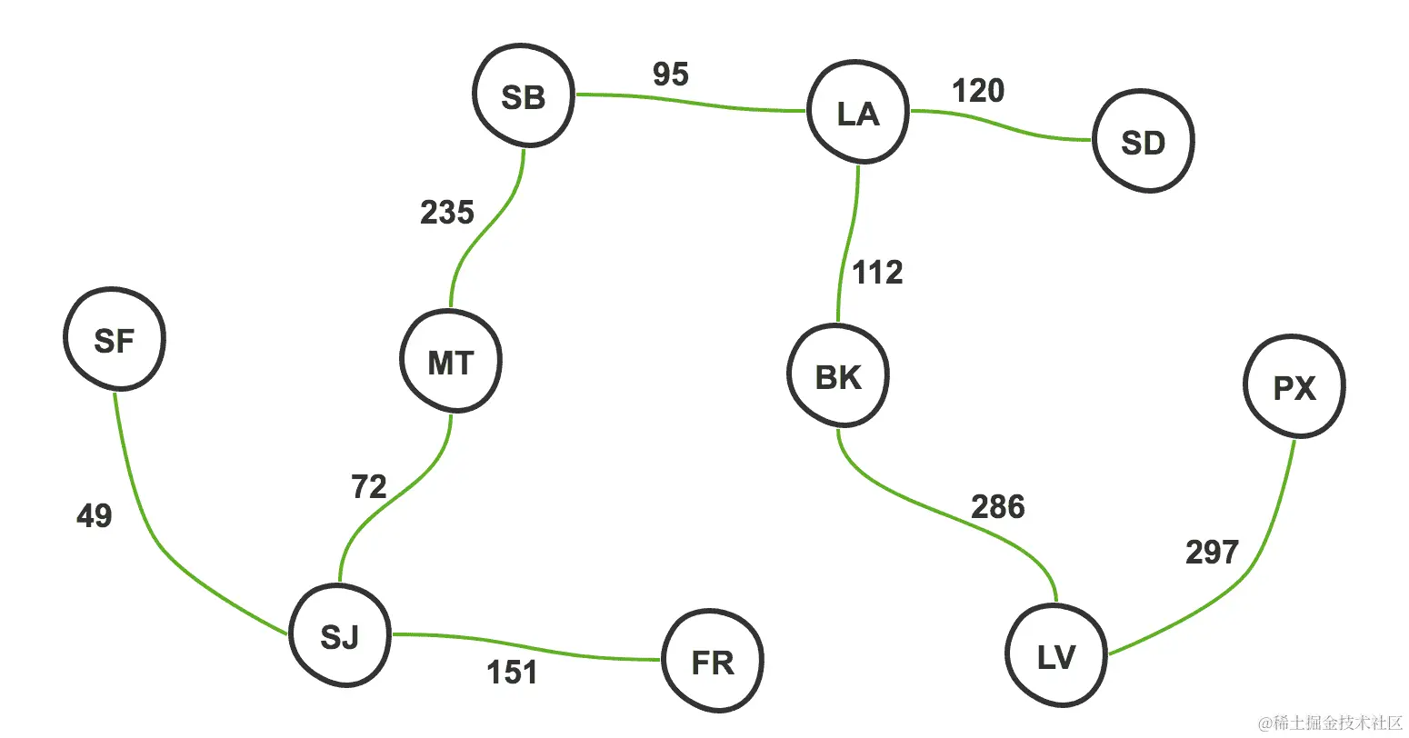 考虑使用 Dijkstra 的一个很好的用例是地图应用程序,它会根据两点之间的交通情况(即每条边的权重或成本)为你提供从 A 点到 B 点的方向。