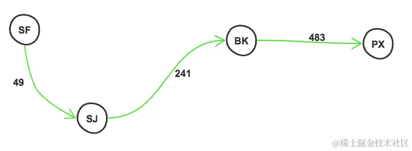 在我们生成最短路径的示例中,我们使用 Dijkstra 算法来使用与到达每个城市相关的成本。这个问题的蛮力解决方案是计算从起点到终点节点的图中所有可用路径,然后计算每条路径的成本,最终选择成本最低的路径。