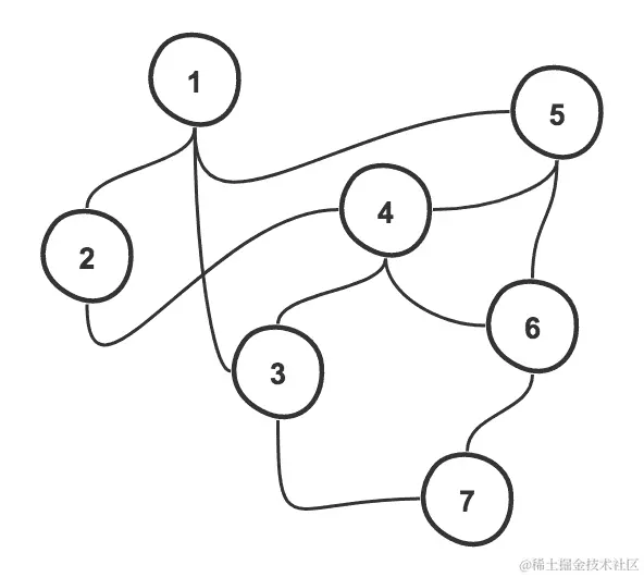 - 循环图:这是一个图,其中边形成节点之间的循环连接,即起始和结束节点相同。例如,在下面的图像中,我们可以注意到节点1 >> 5 >> 6 >> 7 >> 3 >> 1形成了图中的循环: