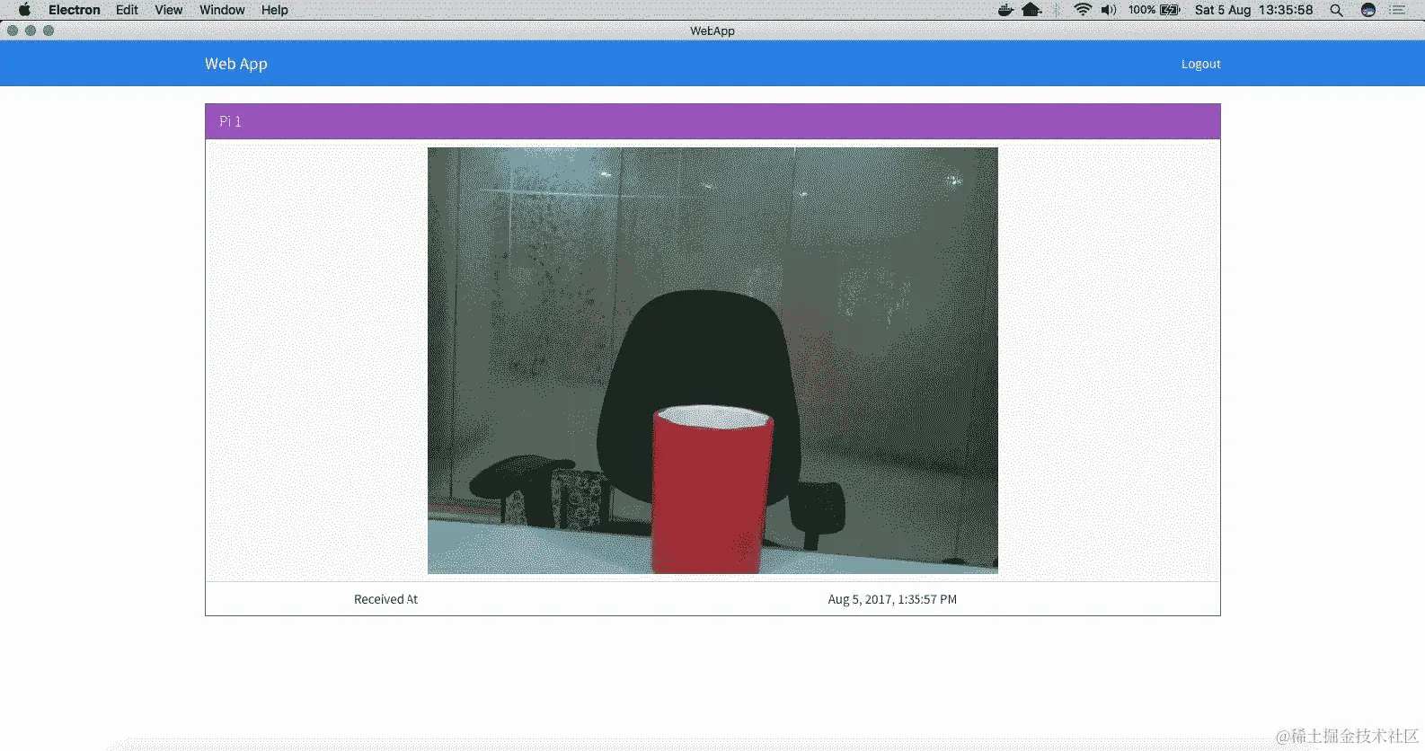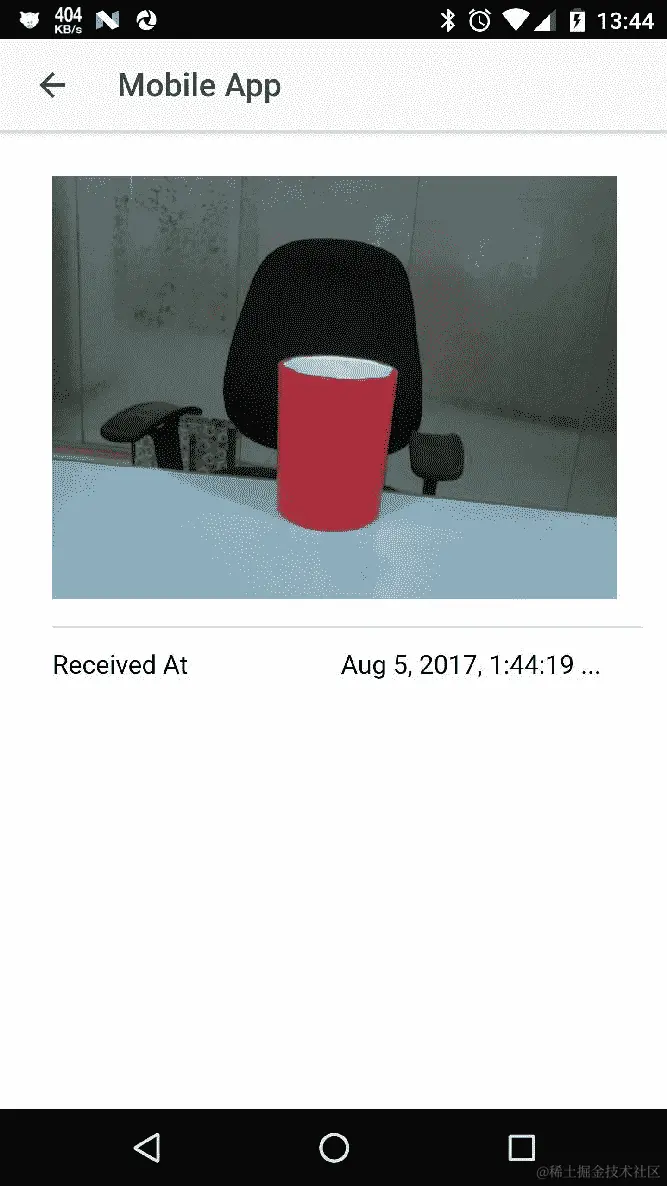 如果一切按预期工作,当导航到“查看设备”页面时,我们应该会看到视频流非常缓慢地显示。我正在监视放在椅子前面的杯子,如下所示: