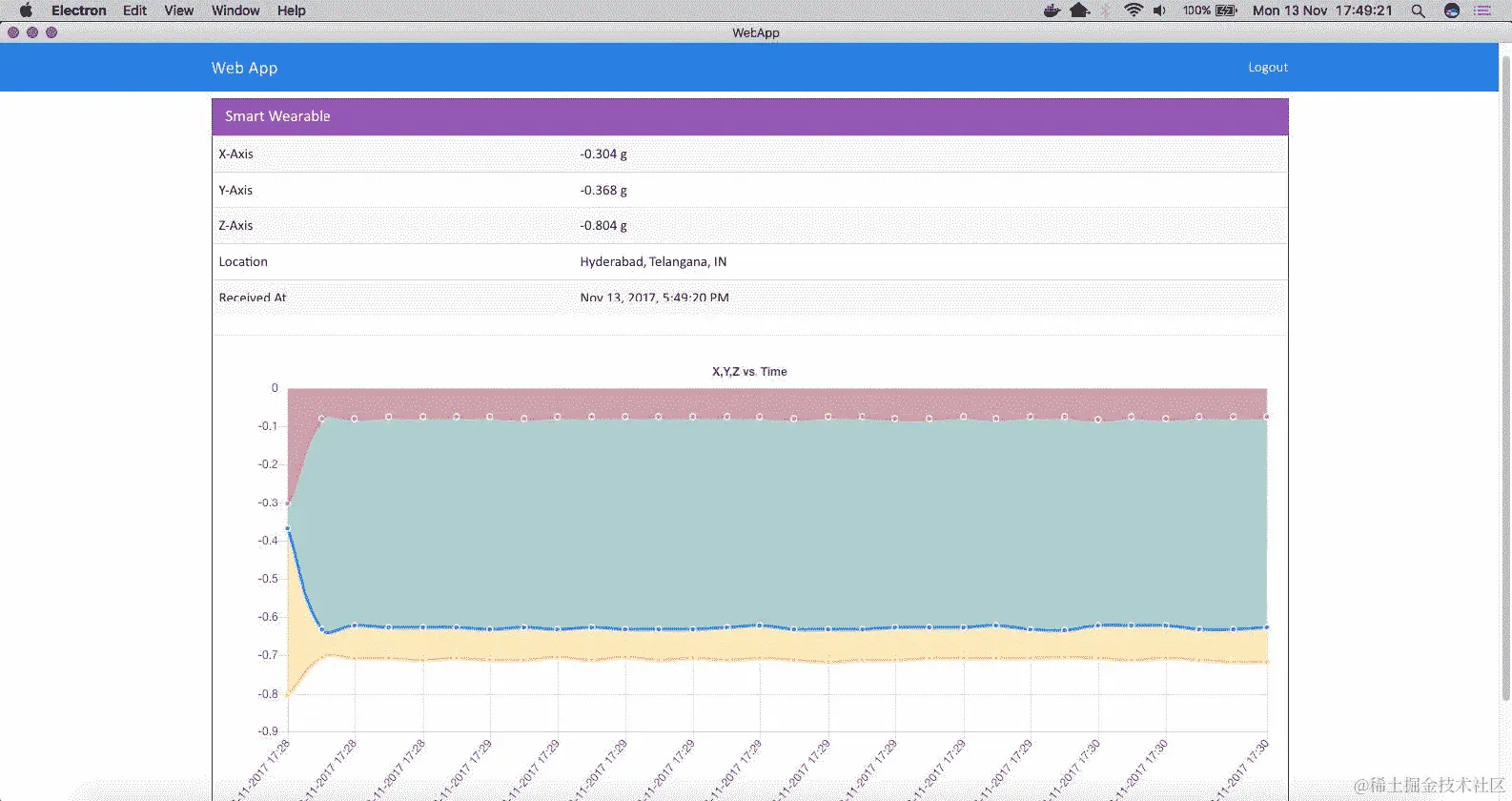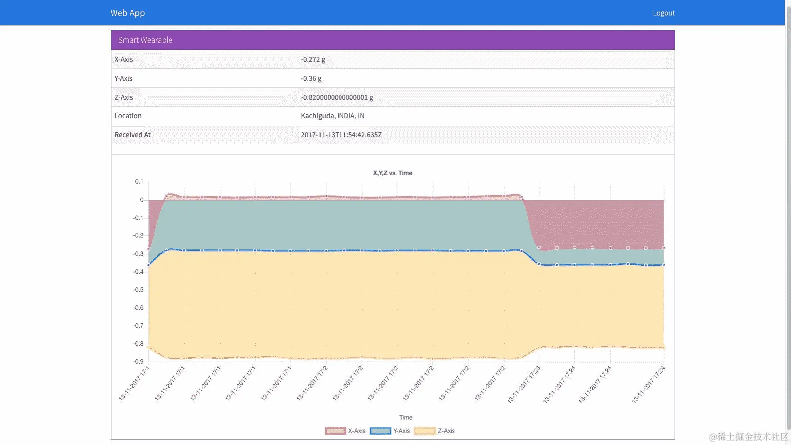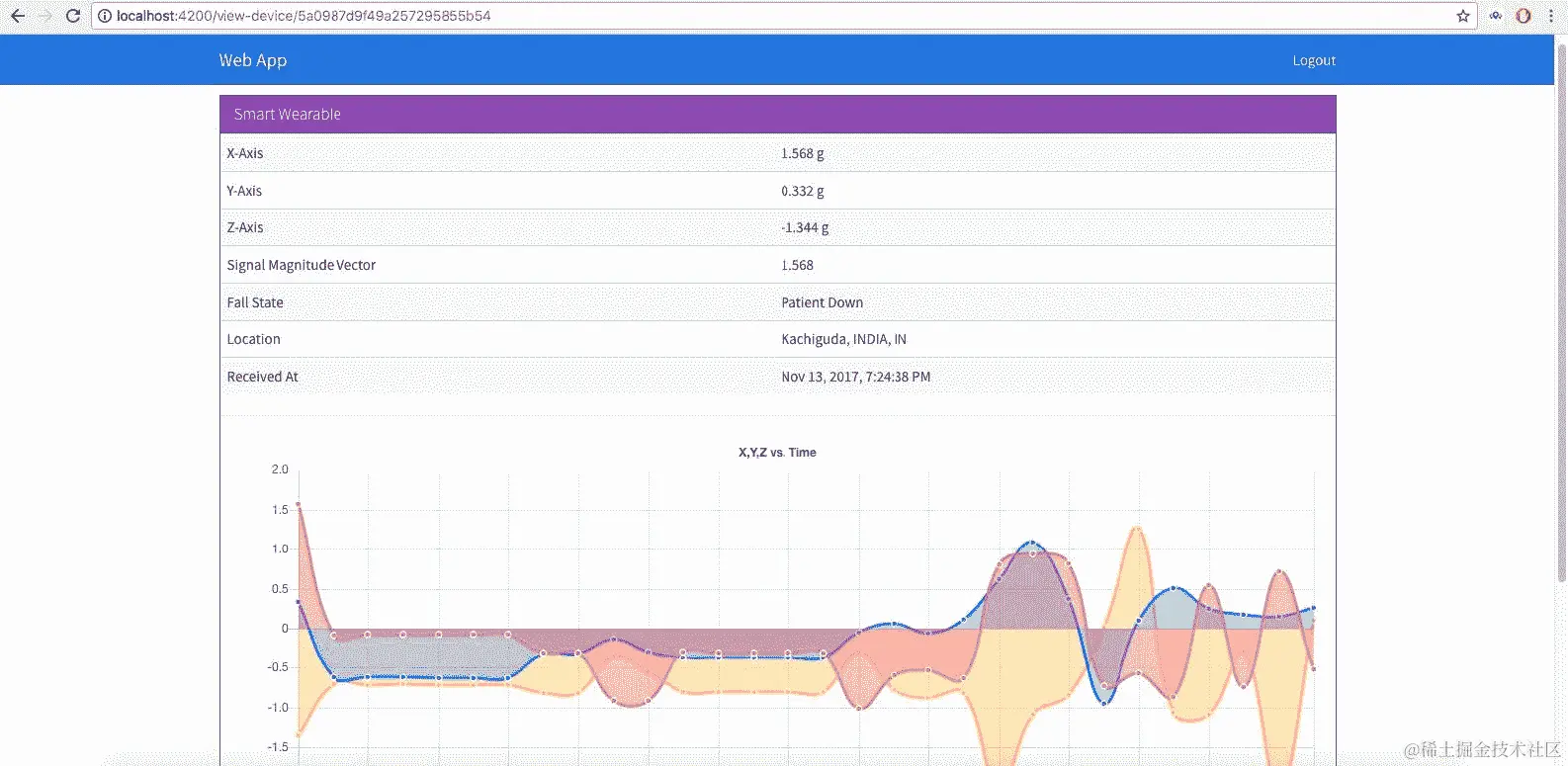 在本章中,我们将实现基本系统,收集 X、Y 和 Z 轴加速度原始值,并在 Web、桌面和移动应用程序上显示。在第七章中,智能可穿戴设备和 IFTTT,我们将使用这些数值来实现跌倒检测。