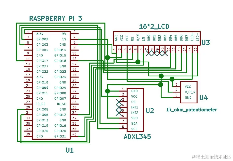 正如您在上面的原理图中所看到的,我们已经建立了以下连接: