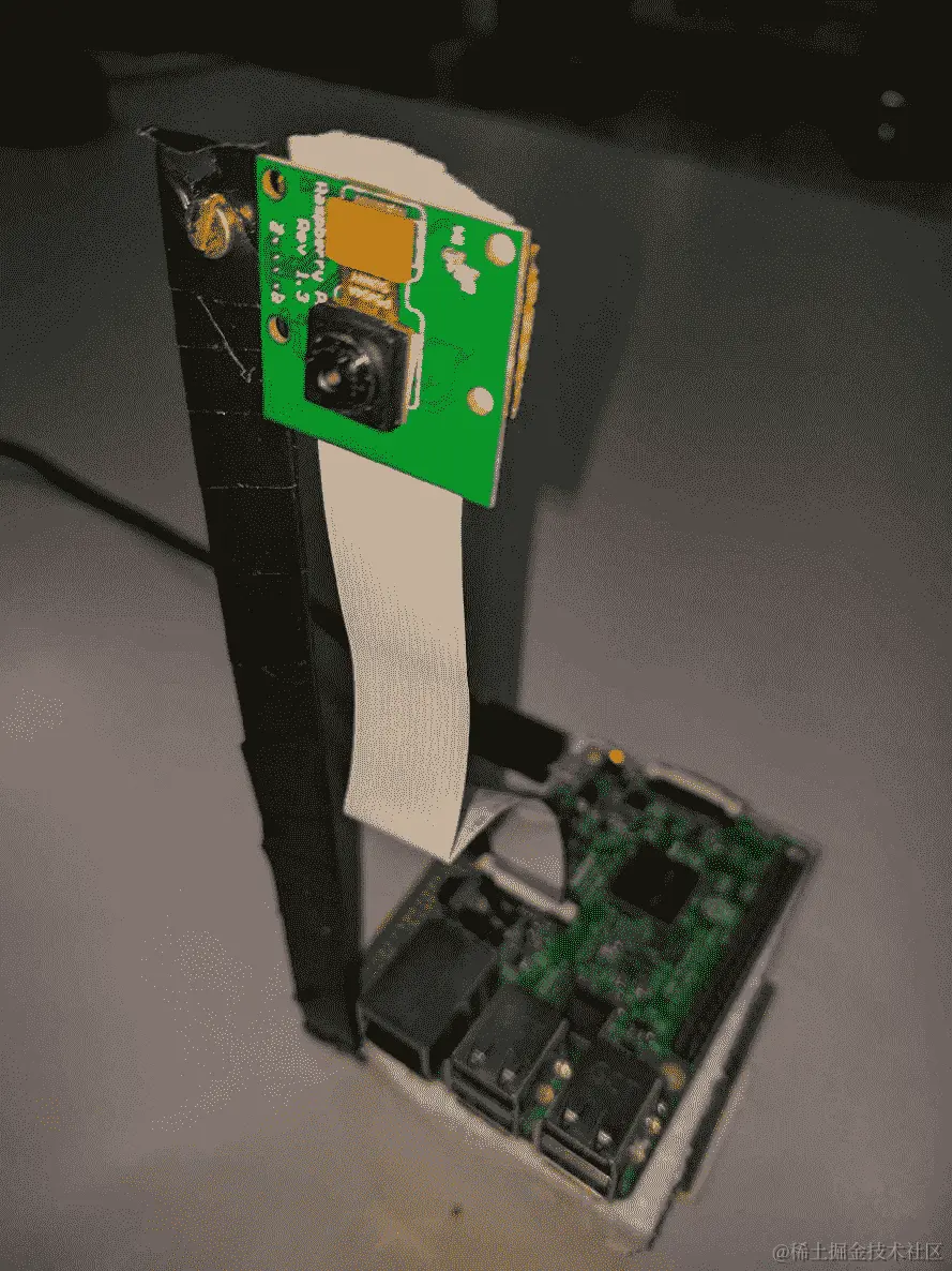 我们将把 PIR 传感器连接到树莓派的 17 号引脚,将摄像头连接到摄像头插槽,就像我们之前看到的那样。
