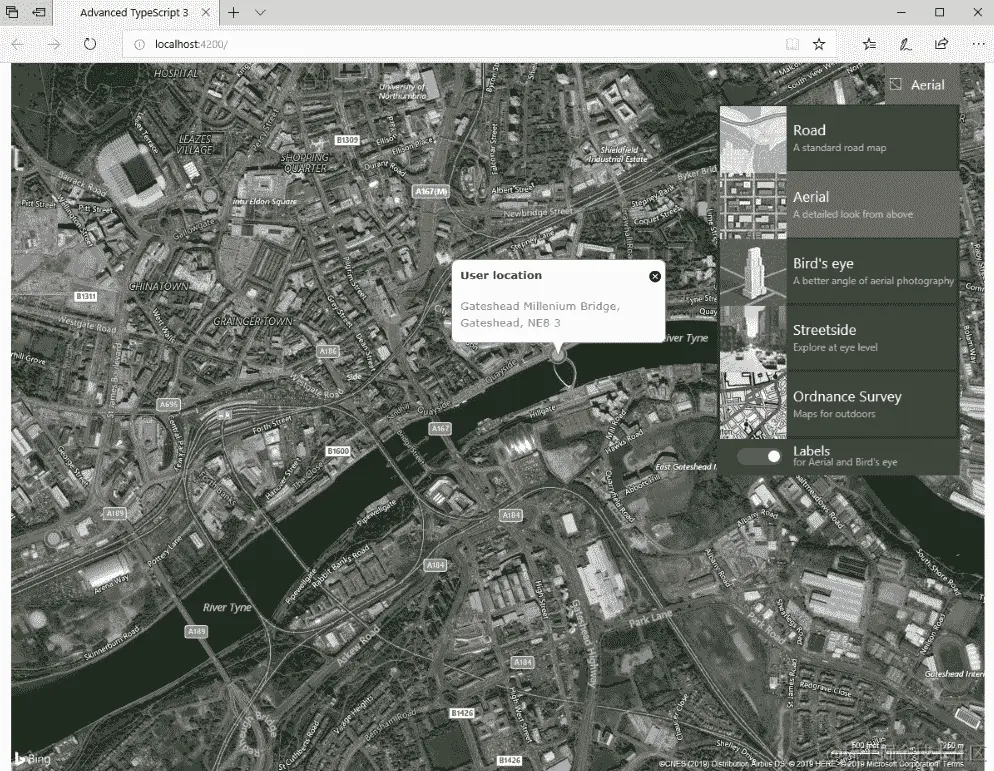 完成后,应用程序应该看起来像这样(也许不要放大到纽卡斯尔):