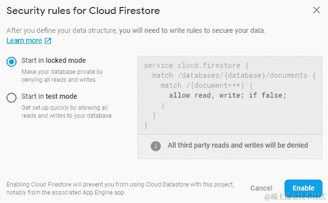在创建数据库时,我们需要选择要应用于我们的数据库的安全级别。我们在这里有两个选项。我们可以从数据库被锁定开始,以便禁用读写。然后,通过编写数据库将检查以确定是否允许写入的规则来启用对数据库的访问。