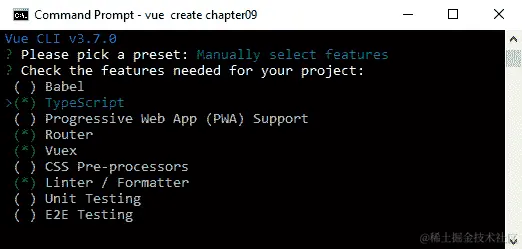 我们用什么命令来创建 Vue 应用程序?