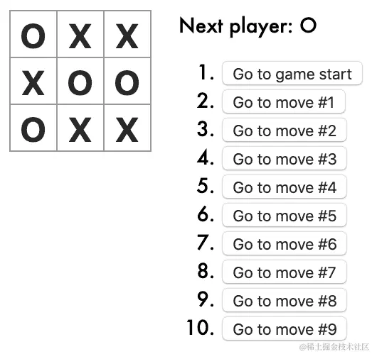 为了说明可重用组件的概念,考虑一下井字棋网格的顶行代码。看一下src/index.js。