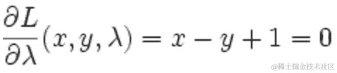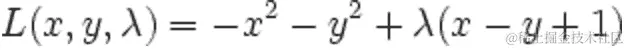 约束函数为g(x, y) = x-y+1=0。然后L乘数变为这样: