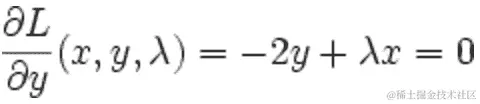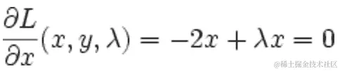 关于x、y和λ的微分,并设置为0,我们得到以下结果: