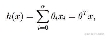在这个最后的假设函数中,θi是参数,也称为权重,它们参数化从X到Y的线性函数空间。为了简化表示法,我们还引入了一个约定,即让x0 = 1(这是截距项),如下所示: