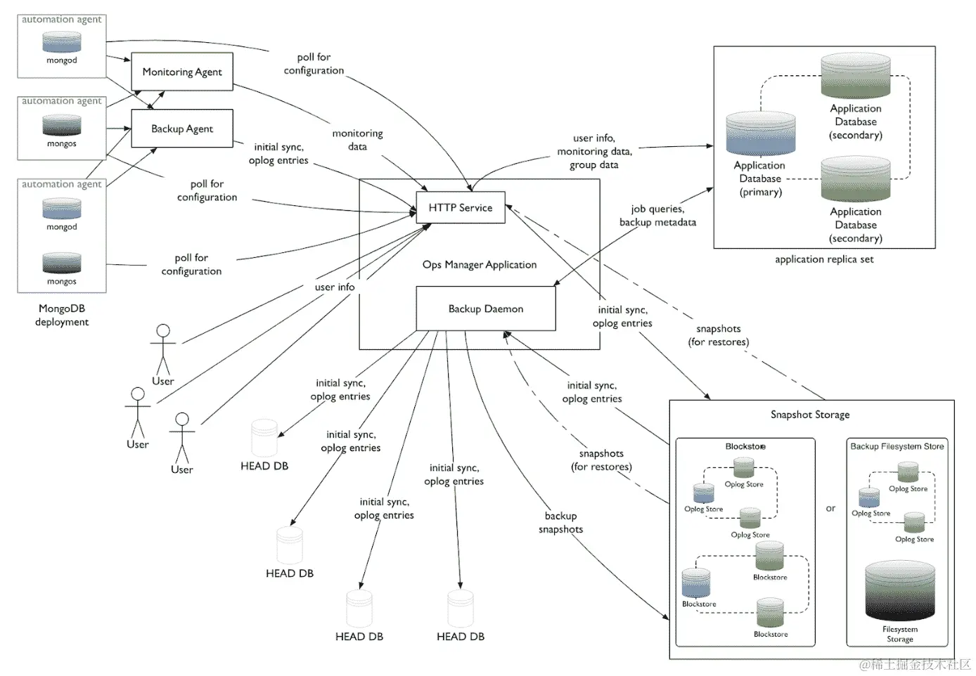 辅助节点通过重放 oplog 的内容与主节点同步。如果我们的 oplog 不够大,或者如果我们遇到网络问题(分区、网络性能不佳,或者辅助服务器的故障)的时间超过 oplog,那么 MongoDB 将无法使用 oplog 来赶上主节点。