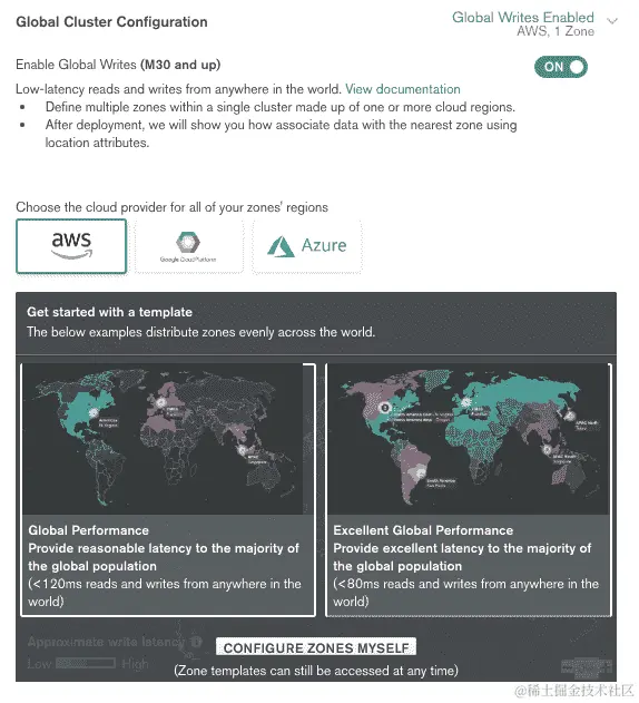 注册后,我们可以在一组云服务器上轻松部署副本集群,而无需任何运营开销。配置选项包括 AWS、Microsoft Azure 或 Google Cloud 作为基础服务器提供商。