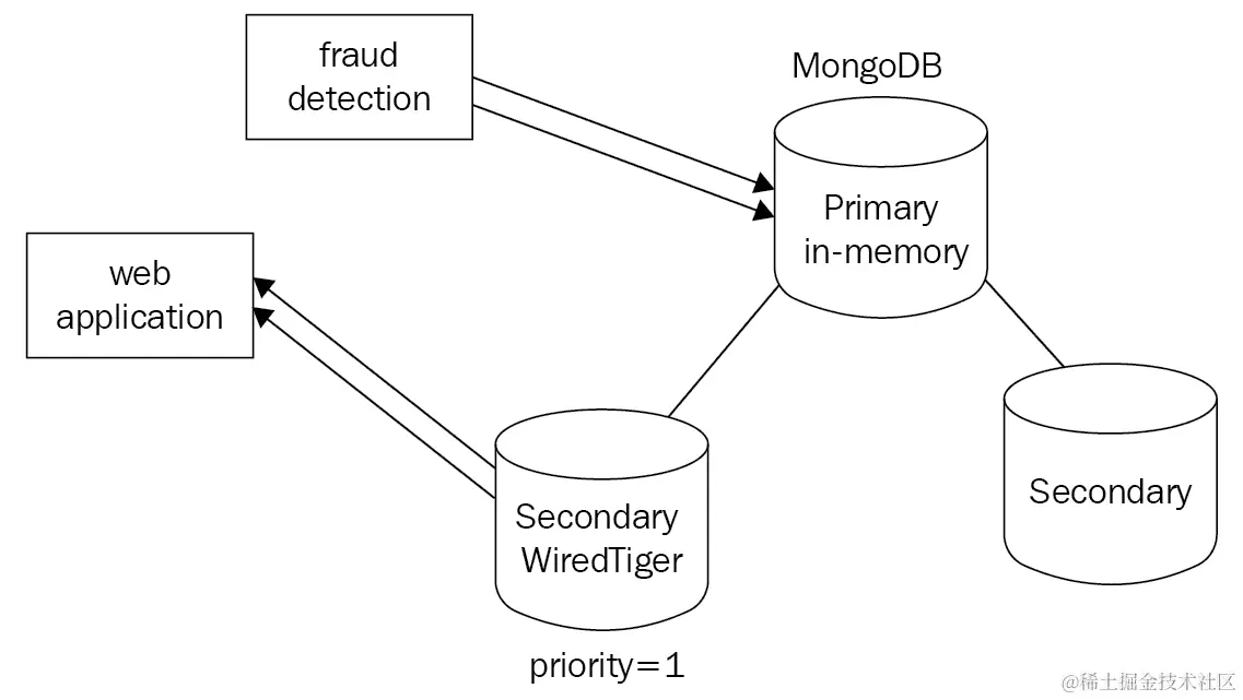 如果我们将writeConcernMajorityJournalDefault设置为false,MongoDB 在确认写入之前不会等待majority写入变得持久。在这种情况下,如果复制集中的成员丢失,我们的数据可能会被回滚。返回的数据已经从大多数服务器传播和确认后才开始读取。