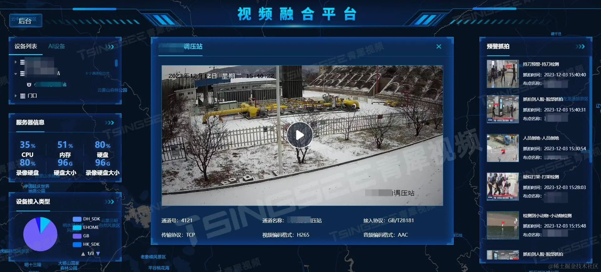 3)网络环境:支持在专网、内网、局域网、广域网、VPN、公网等网络环境中部署,支持设备通过4G、5G、WIFI、有线等方式进行传输;能提供基于太阳能供电+4G摄像头的远程视频监管方案。