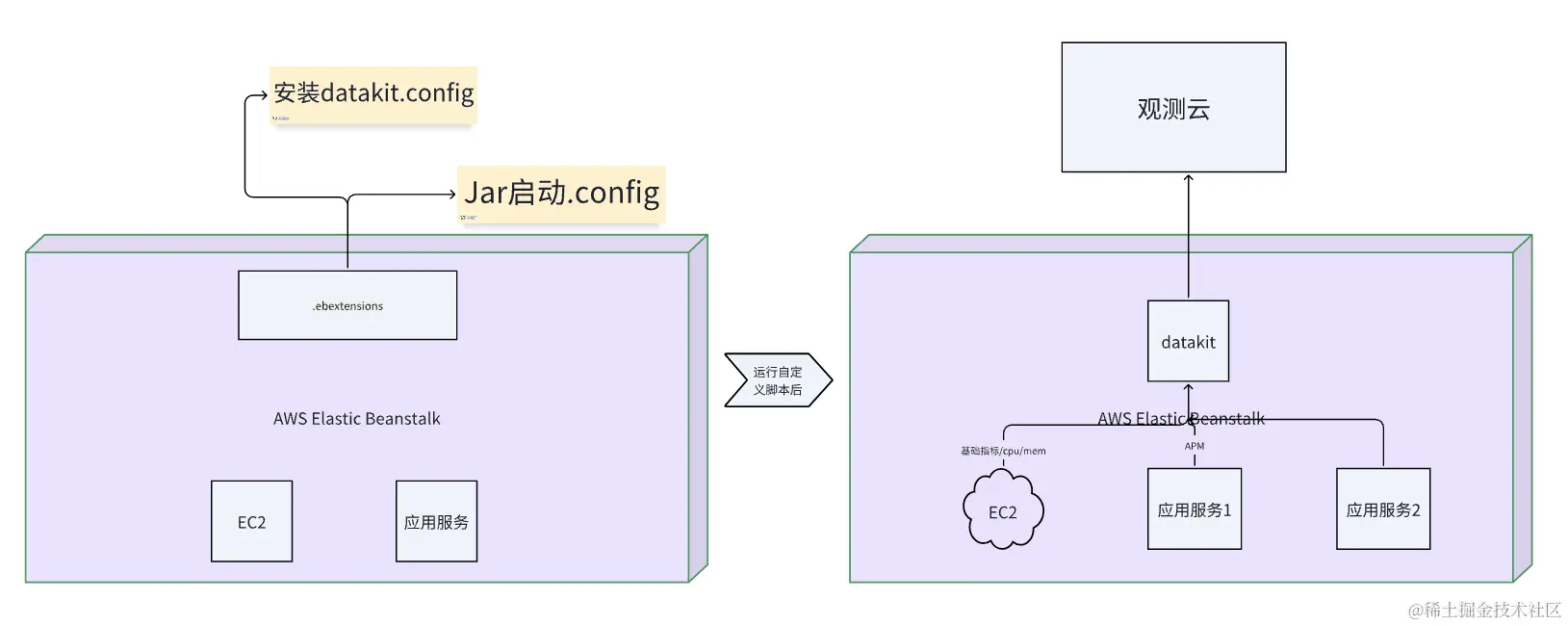 观测云全面支持在 AWS Elastic Beanstalk 上的可观测能力,提供包括对基础资源的监控、应用程序链路跟踪等。文章将介绍在该环境上如何接入 APM,如何安装 datakit 等最佳实践。