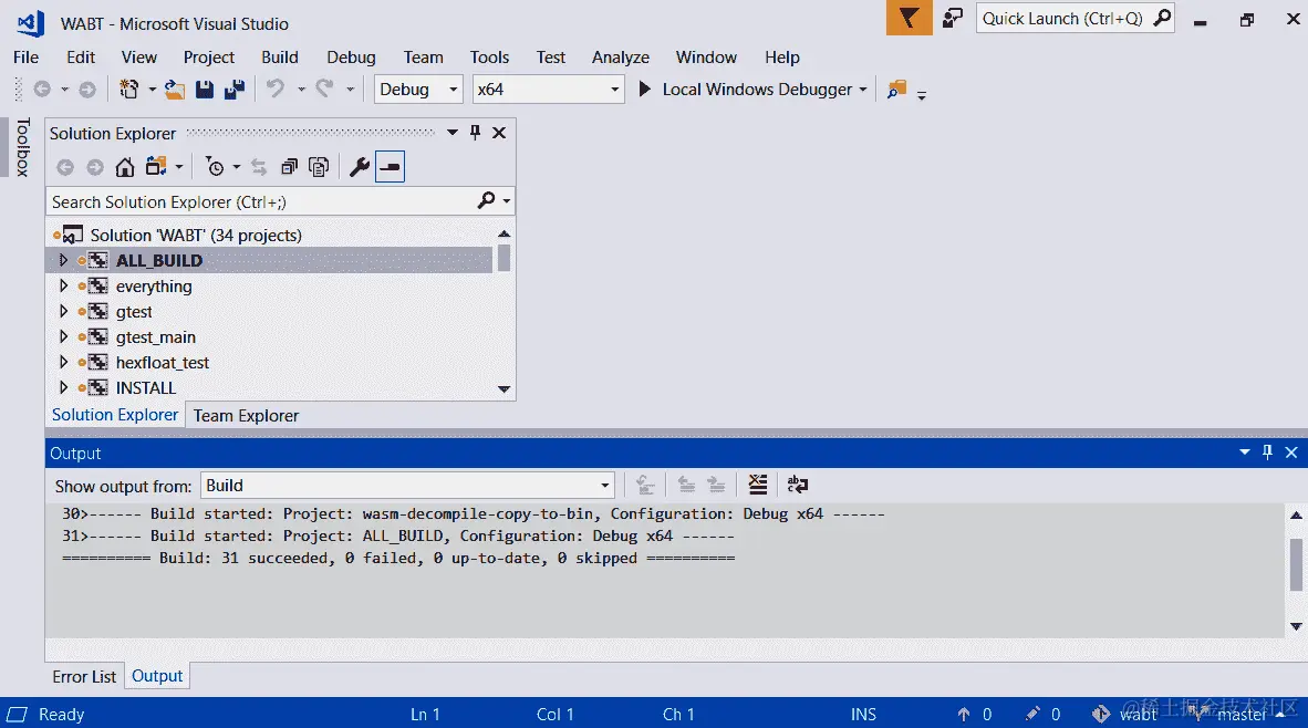 最后,我们将进入 Visual Studio 并构建项目。