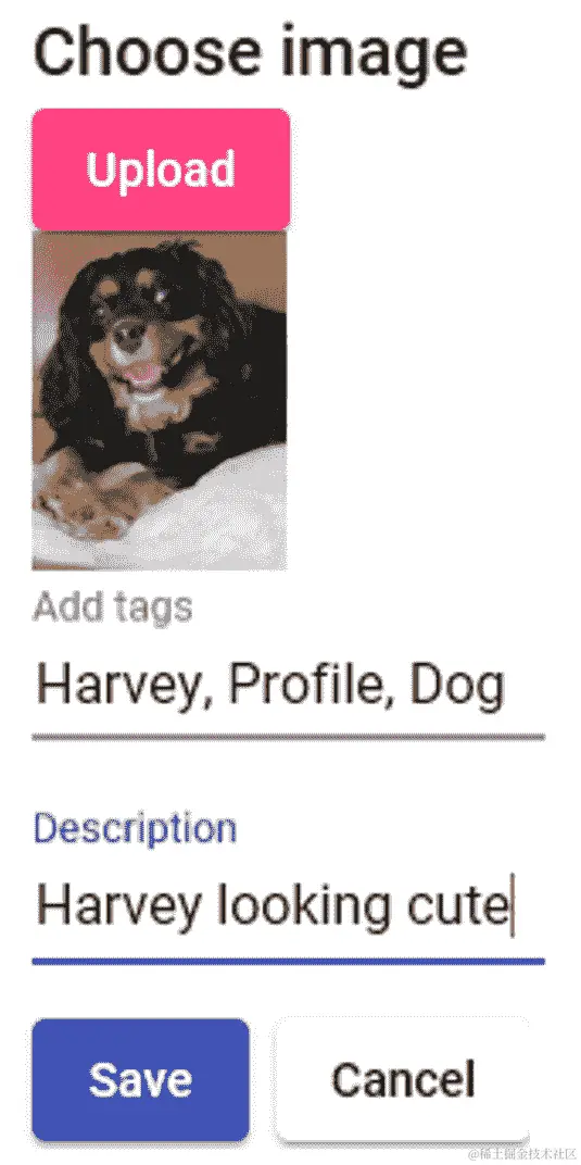 我们已经将我们的对话框连接到我们的 Angular 代码中。我们有一个完全可用的应用程序,可以用来将图像保存到我们的数据库中。