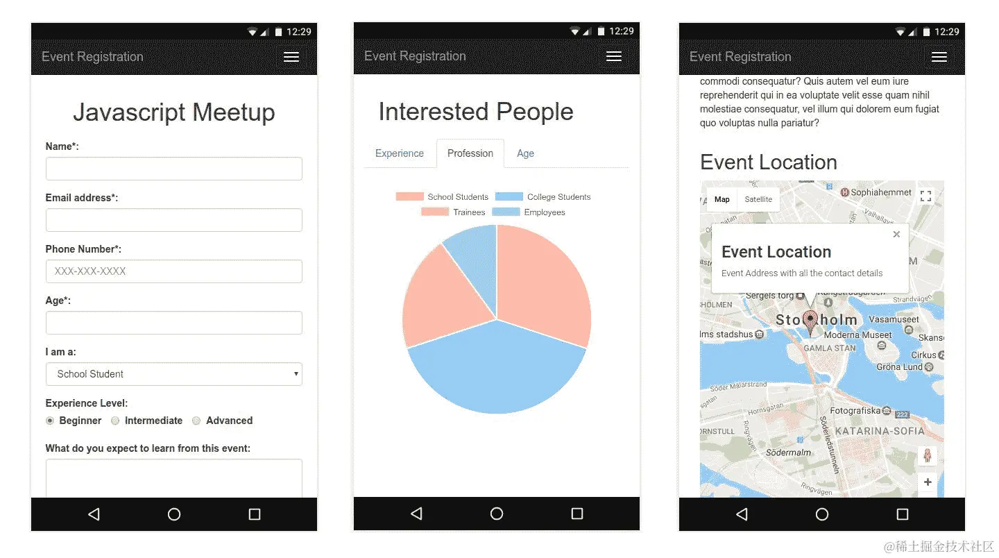 此外,大多数人将使用手机注册活动。因此,应用程序应完全响应。