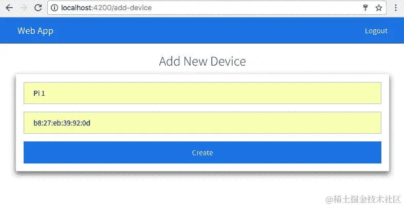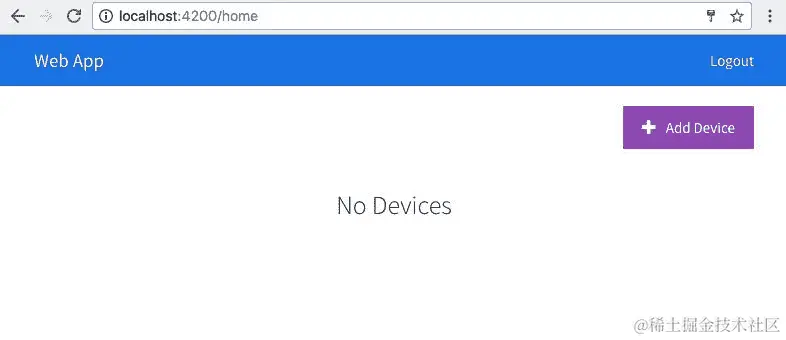 一旦我们成功登录,我们应该看到如下的主页。我们可以使用标题栏中的+图标添加新设备: