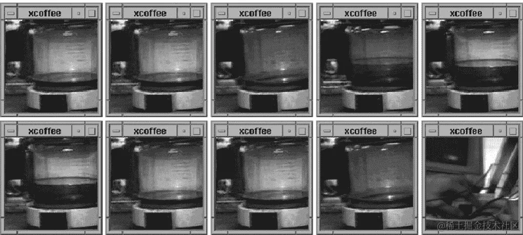 另一个有趣的物联网例子是特洛伊房间咖啡壶。这是由昆汀·斯塔福德-弗雷泽和保罗·贾德茨基于 1993 年创建的。一台摄像机位于剑桥大学计算机实验室的特洛伊房间,监视着咖啡壶的水平,每分钟更新一次图像并发送到建筑的服务器:
