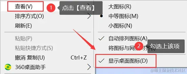 步骤2:在查看设置中,确保【显示桌面图标】的复选框是勾选的;