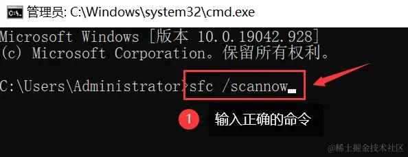 步骤2:在命令提示符中,输入【sfc /scannow】并回车,运行系统文件检查器;