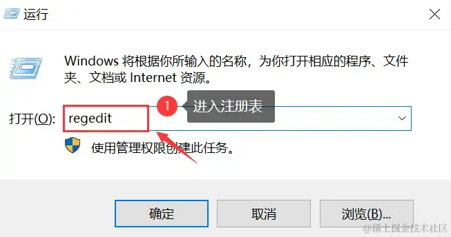 步骤1:按下【Win+R】 键,输入【regedit】并回车,打开注册表编辑器;