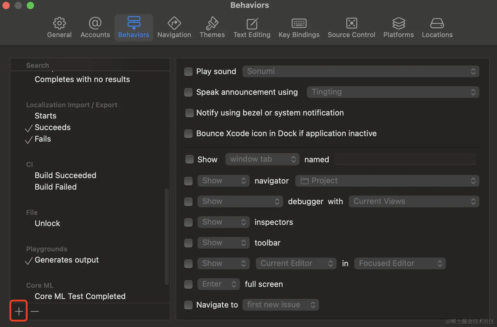 依次打开 : Xcode menu > Behaviors > Edit Behaviors…