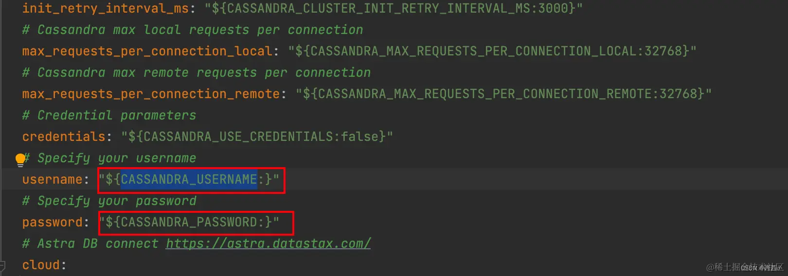 username: "${CASSANDRA_USERNAME:cassandra}"