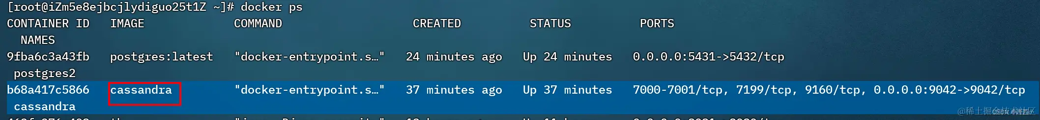 -d :程序后台执行cassandra:lastest :cassandra最新版本号