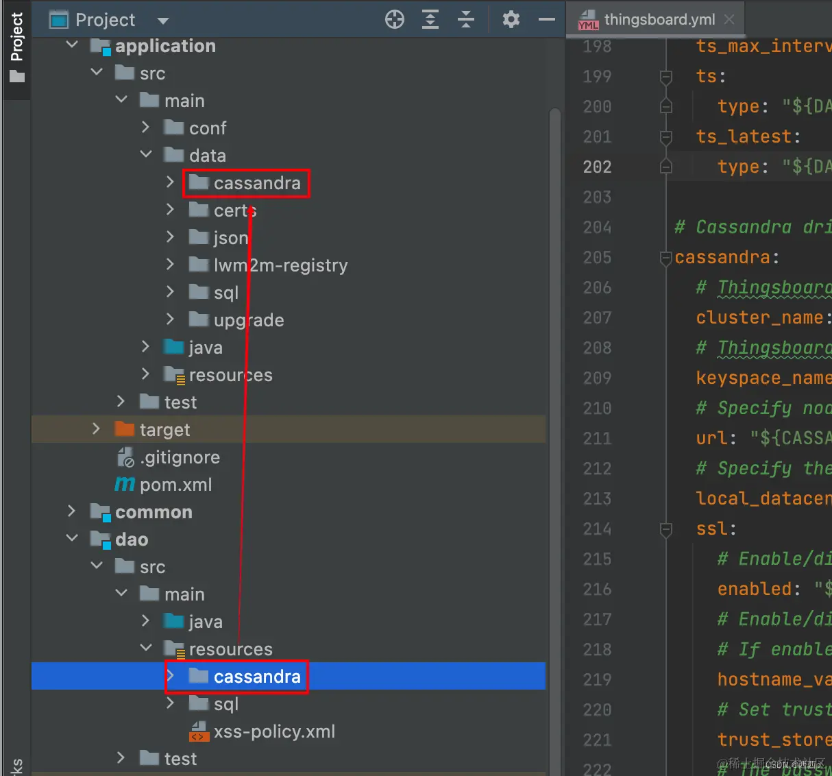 4、打开application目录下的thingsboard.yml,更改datasource链接地址
