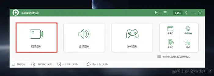 步骤1:下载并安装数据蛙录屏软件,打开软件后,选择录制模式。对于录制网页视频,通常选择 “视频录制”或“窗口录制” 。