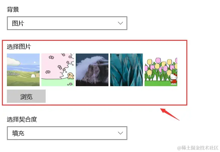 (4)选择图片作为壁纸后,点击【浏览】 按钮,选择图片文件并设置。