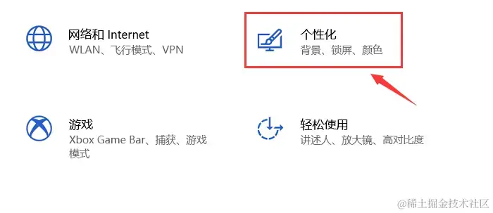 (2)在 【设置】应用中,选择 【个性化】选项;
