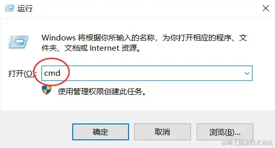 步骤1:【Win+R】打开运行窗口,在搜索栏中输入【cmd】,然后点击**【确定】**按钮。