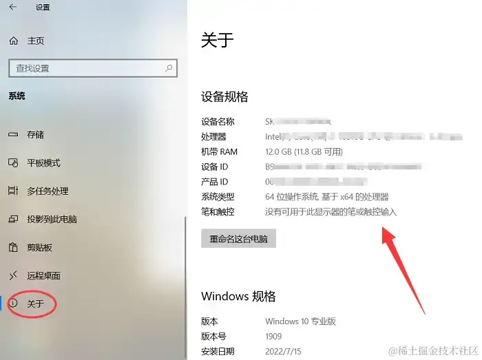 步骤3:在**【关于】**页面中,您可以查看电脑的基本信息,包括处理器、内存、系统类型等。