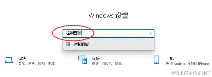 步骤1:【Win+i】打开设置窗口,输入并打开【控制面板】。