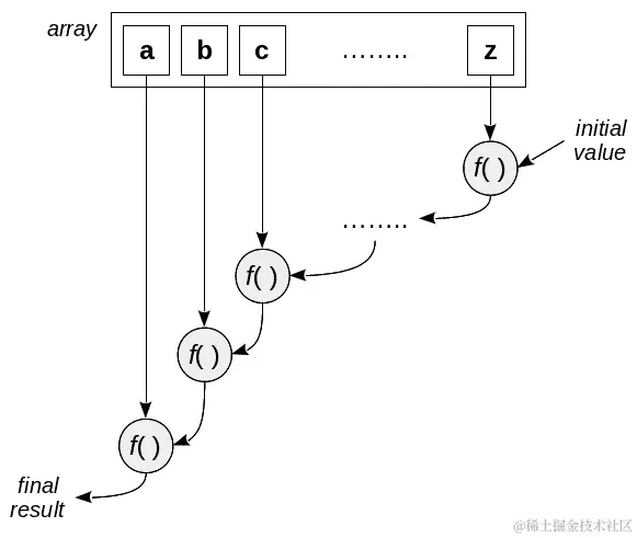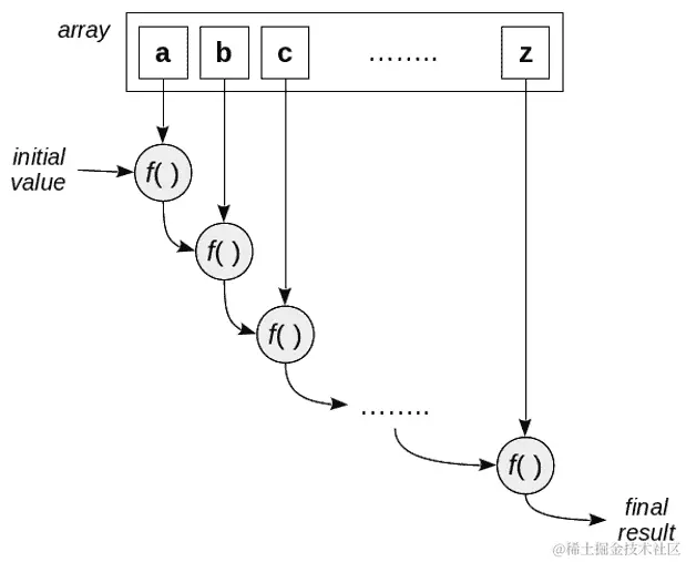 你可以看到第一个求和是通过将初始值(零)和数组的第一个元素相加来完成的,然后将该结果用于第二次相加,依此类推。