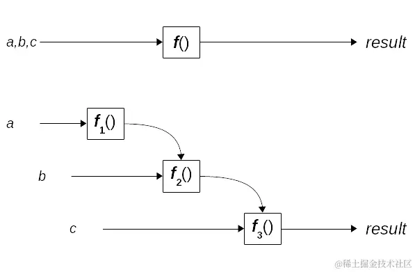 在柯里化函数时,您可能希望存储中间结果。当我们像下面的代码一样做某事时,我们假设您将重用带有固定参数的柯里化函数,这意味着原始函数的第一个参数最不可能改变。现在让我们考虑一个具体的情况。回答这个问题:更可能的是——您将使用map()将相同的函数应用于几个不同的数组,还是将几个不同的函数应用于相同的数组?对于验证或转换,前者更有可能……但这并不是我们得到的结果!