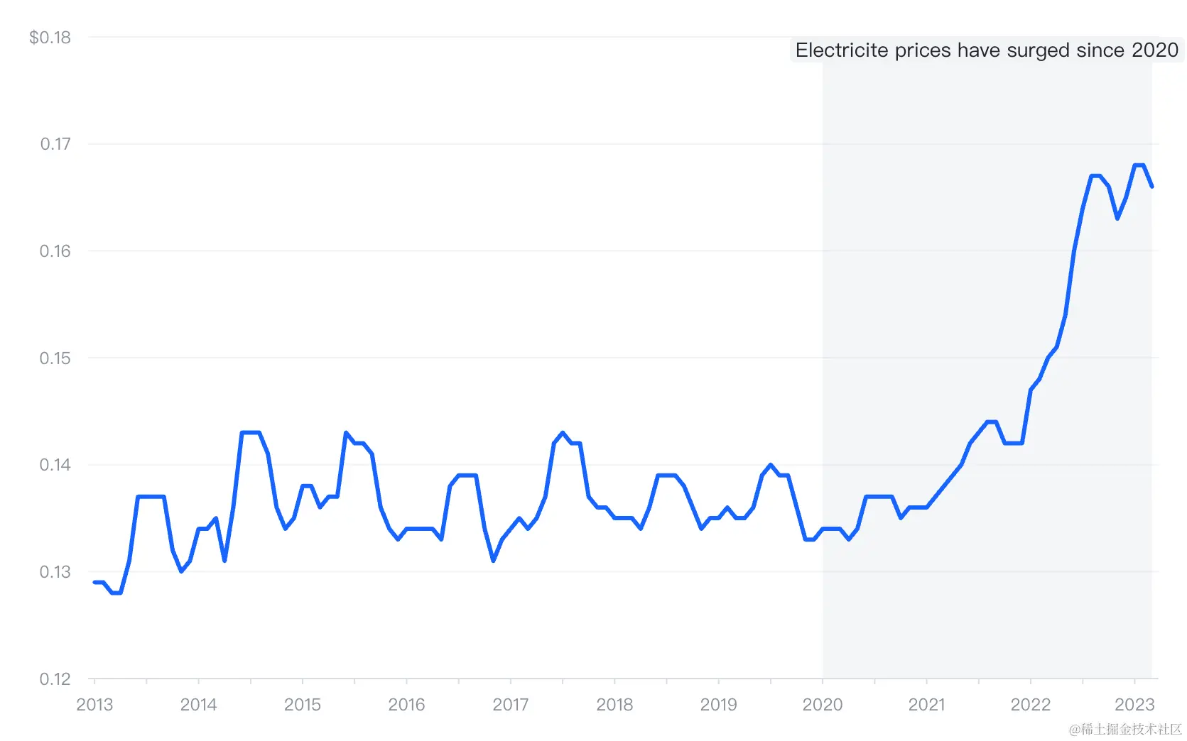 text: 'Electricite prices have surged since 2020',