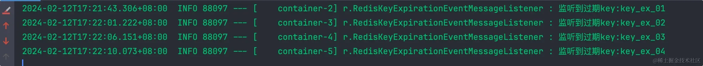 当这些 key 过期后,RedisKeyExpirationEventMessageListener 会收到相关通知: