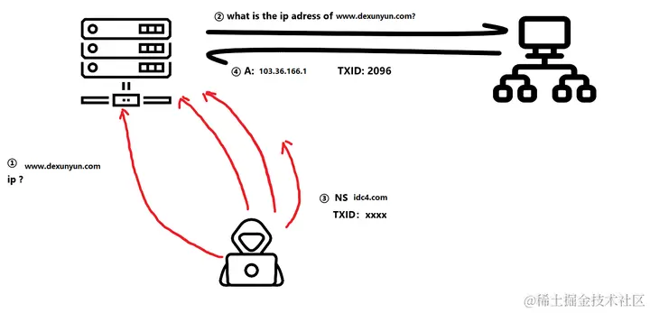这种攻击方式具有隐蔽性和持续性。一旦DNS服务器被投毒,所有依赖该服务器的用户都可能会受到影响。此外,由于DNS缓存的存在,即使攻击者停止发送伪造的响应,受害者仍然可能会继续受到攻击,直到DNS缓存过期或被清除。DNS缓存投毒攻击的具体原理可以总结以下几点: