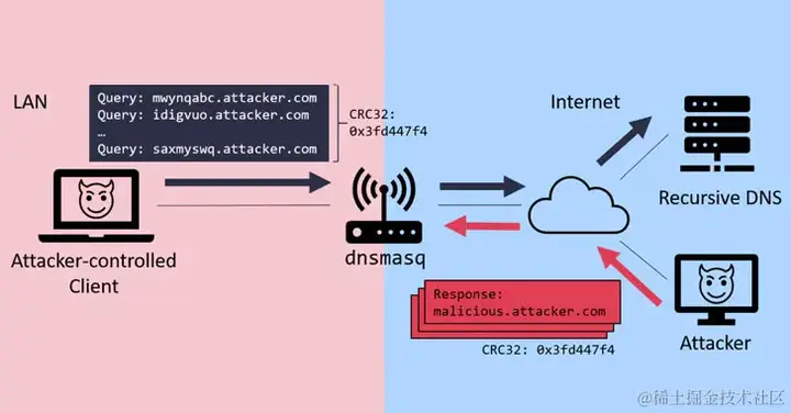 而DNS缓存投毒攻击是一种利用DNS解析过程中的漏洞,将伪造的DNS响应注入到DNS缓存中,从而诱导用户访问错误的IP地址,进而实施钓鱼、恶意软件植入等攻击行为。攻击者通过伪造DNS响应,假冒真实的DNS服务器,将用户重定向至欺诈性网站,窃取用户敏感信息或进行其他非法活动。