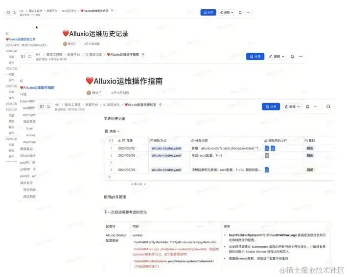我们这个团队最早运维的同学只有一个人,他负责很多底层Infra 的维护和相关工作,当我要把Alluxio部署上来的时候,其实运维那边的资源是不够的,所以相当于我也兼半个运维。从自己要去运维一个东西的角度来说,要做好很多运维方面的记录和知识沉淀,特别是对一个新手来讲很重要。比如下一次出现问题怎样更好地解决,是不是之前已经有过这样的经验。