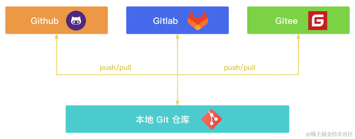例如,你可以为 GitHub 仓库添加别名 github,为 GitLab 仓库添加别名 gitlab: