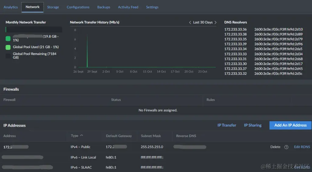 在Cloud Manager中点击虚拟机,然后点击Network选项卡,即可看到这些设置: