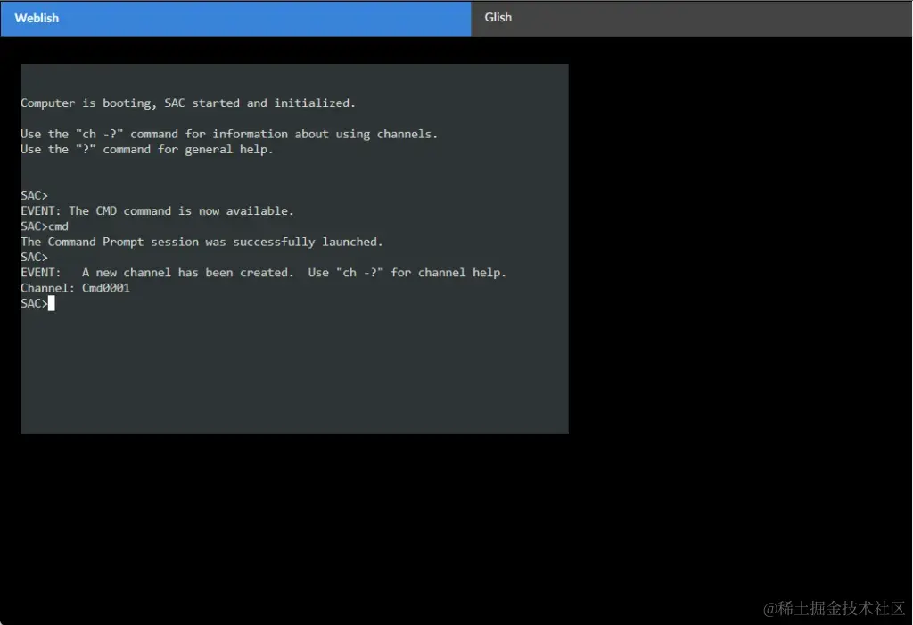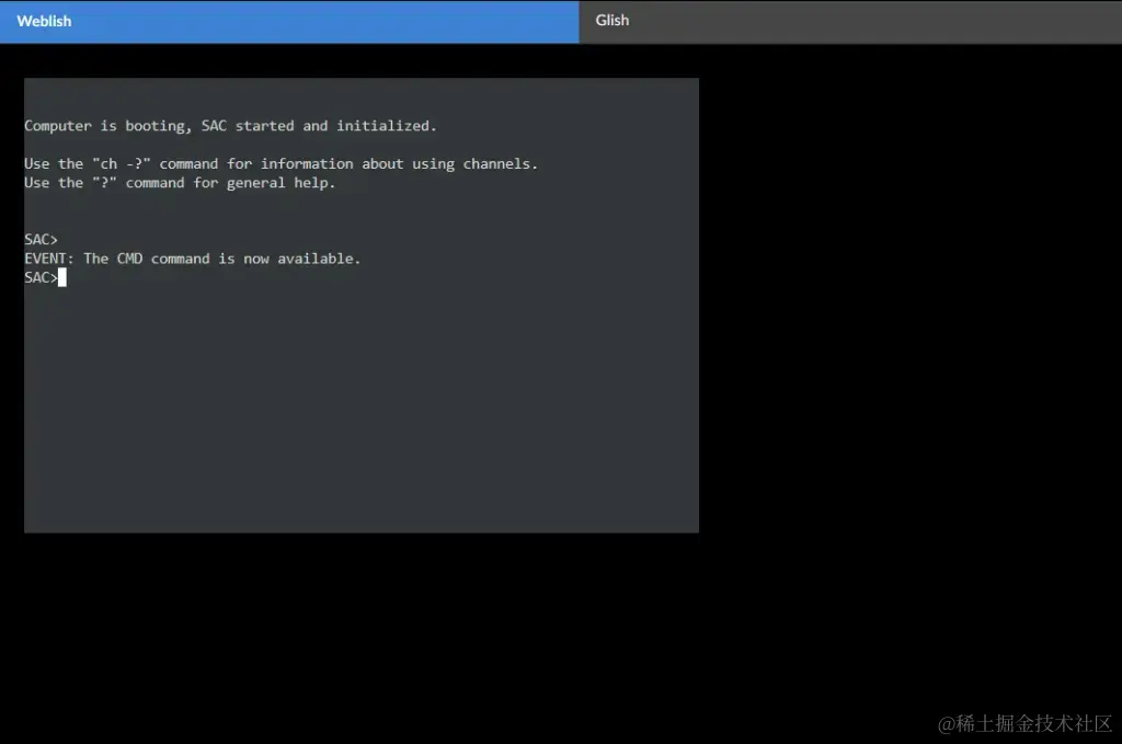 我们在这里看到的是Windows内置的特殊管理控制台(SAC,Special Admin Console)功能。