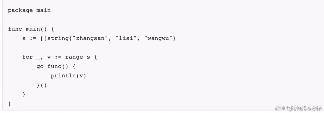 go func(v string) {