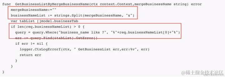 踩坑分析: 当对空字符串进行Split,将会返回一个包含一个空字符串的切片数组,数组长度为1,但是查询时由于空字符串会被过滤掉了该条件,会导致查询出来的数据不正确,甚至可能会是全表扫,由于查询所有数据可能会系统崩溃掉。